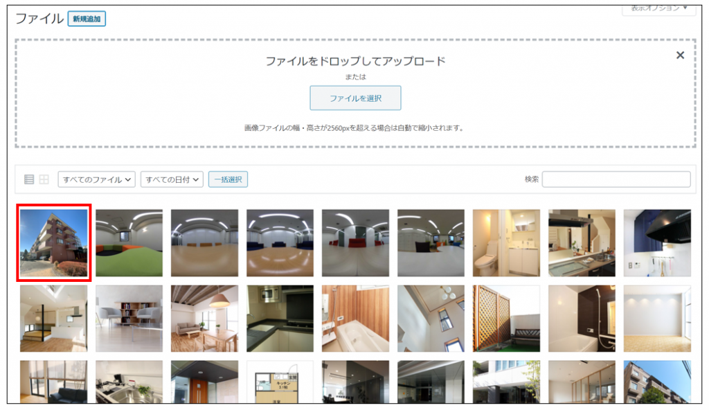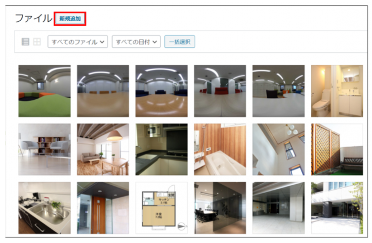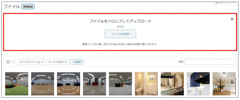 アップロードしたファイルを管理したり、ファイルをアップロードすることができる画面のことです。