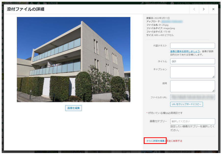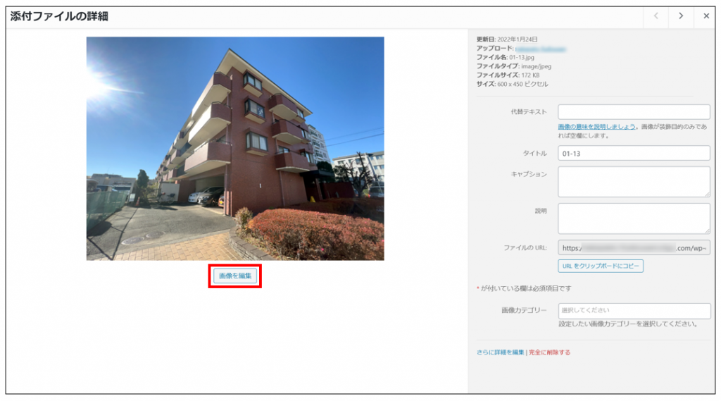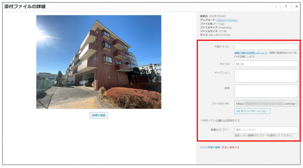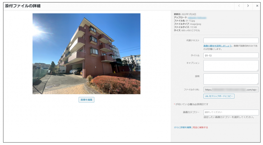 - 画像カテゴリー:社内管理用の任意のカテゴリー(詳細は画像カテゴリーをご覧ください)