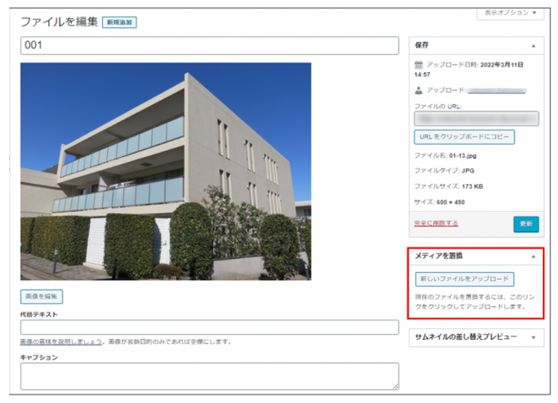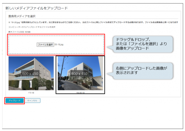 「アップロード」をクリックしたら差し替え完了です。