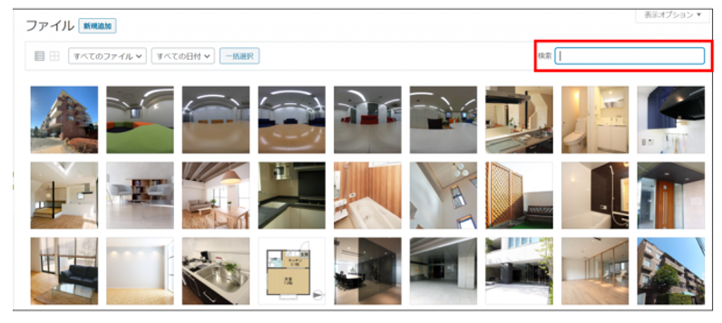 画面右上の検索窓から、ファイル名でフリーワード検索ができます。