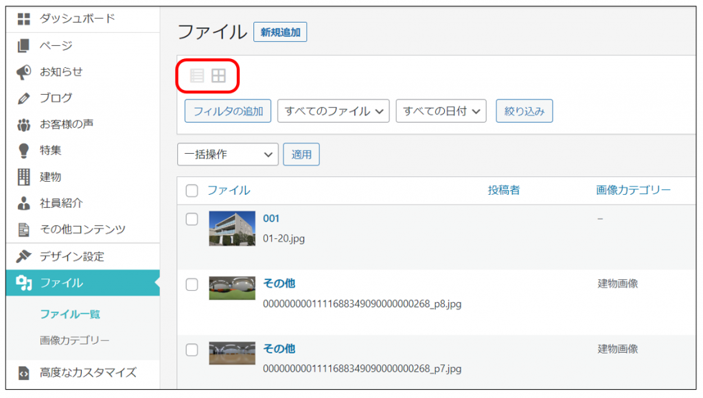 1. 一覧表示形式の切り替え