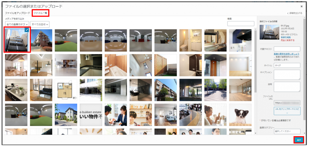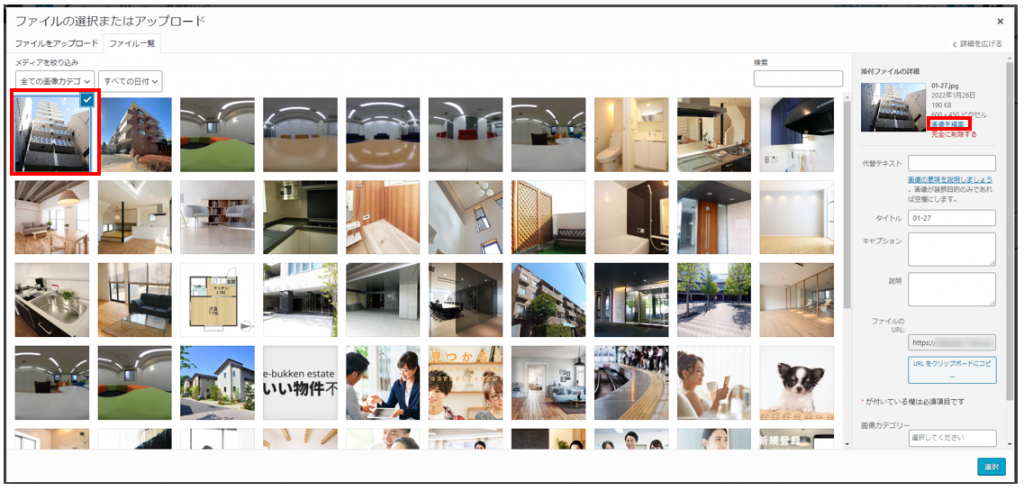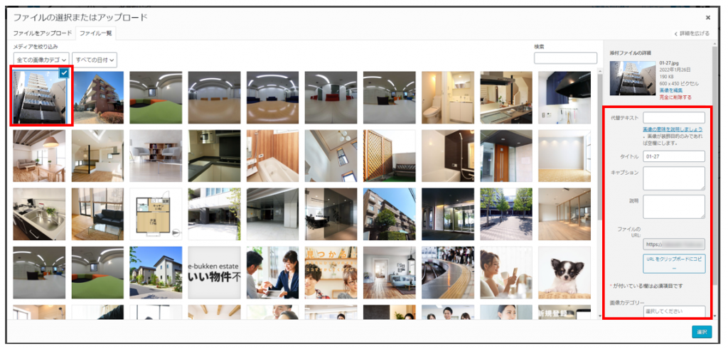- 画像カテゴリー :社内管理用の任意のカテゴリー(詳細は画像カテゴリーをご覧ください)