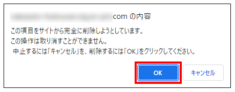確認画面が表示されるので「OK」をクリックすると、ファイルが削除されます。