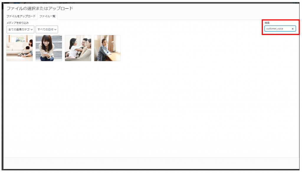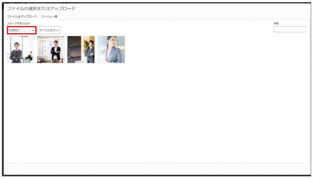 該当のカテゴリーが設定されているファイルを絞り込めます。
