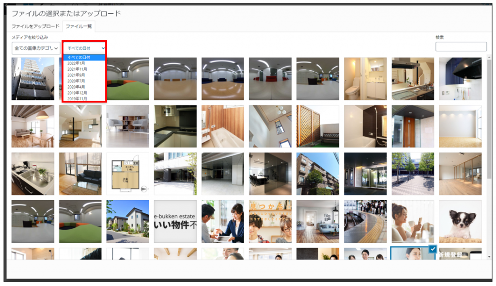 「画像カテゴリー」「アップロード年月」「フリーワード」で