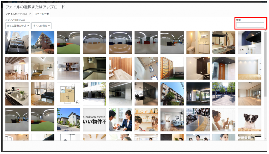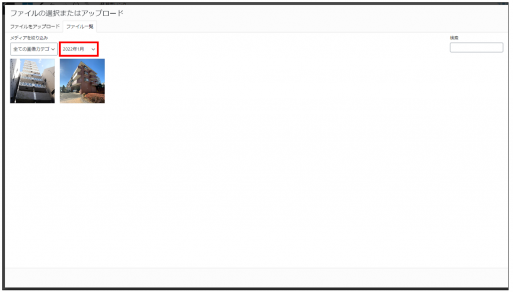 「検索」に任意のワードを入力することで、ファイル名等で絞り込めます。
