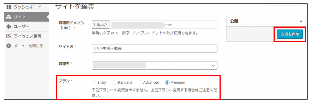 サイトにプラン変更を反映させる設定をおこなっていただく必要があります。