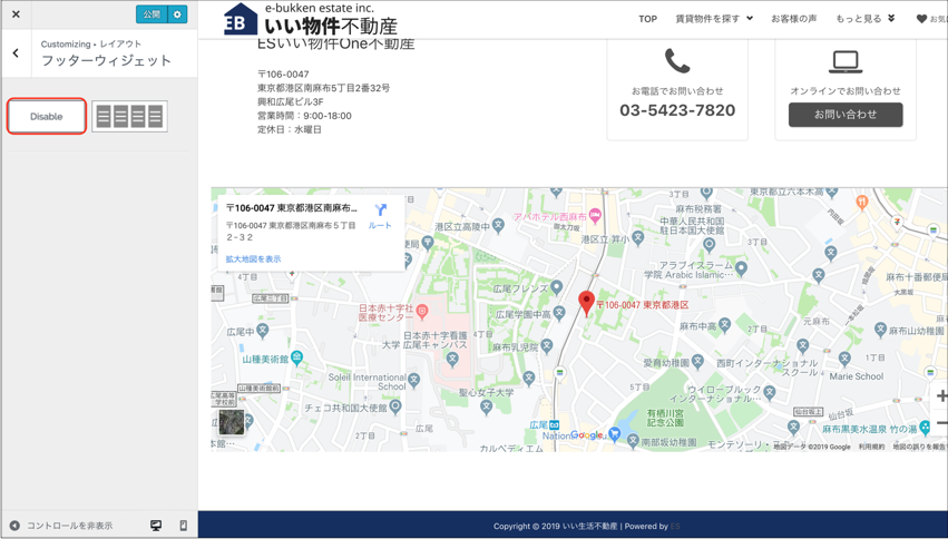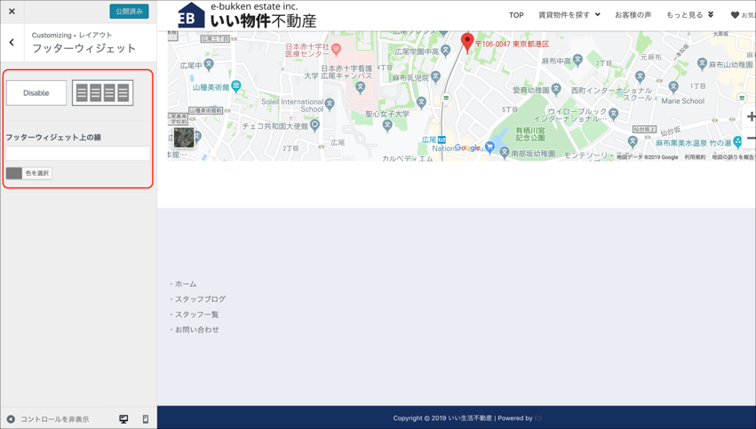 | フッターの有効/無効 | フッターを有効にすることができます。 有効にするとウィジェットが配置できるようになります。 ウィジェットについてはこちら |