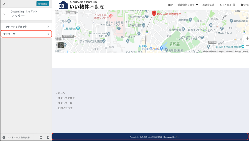 | セクション2 | フッターバーの中で2つ目のエリアを編集できます。 セクション1と同様です。 |