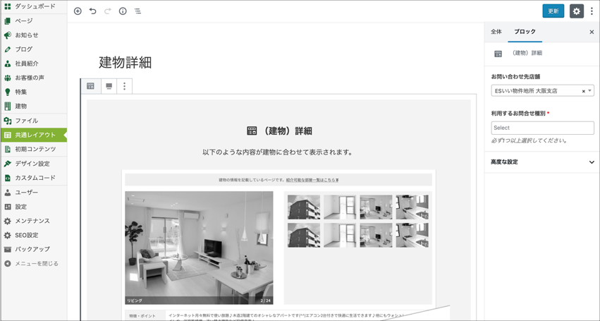 共通レイアウトとは、建物詳細ページと広告詳細ページで使われるレイアウトのことです。