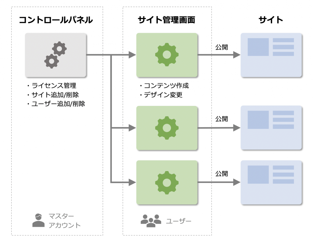 『いい生活ウェブサイト Flex』の管理画面は以下図のような構成になっております。