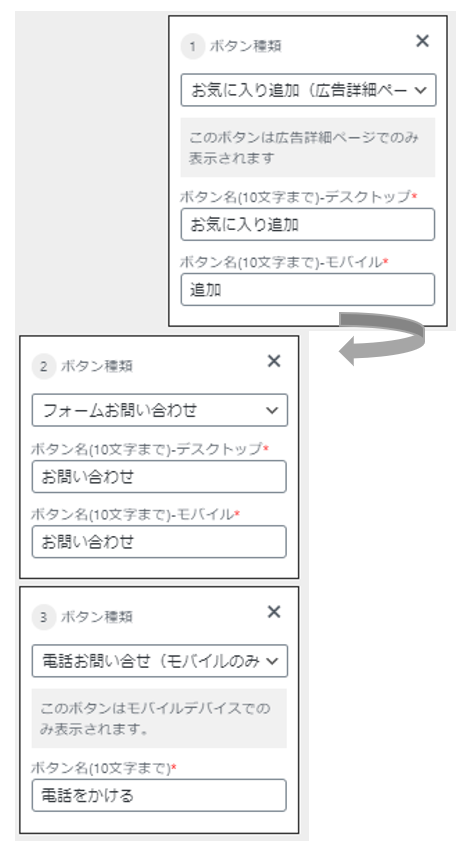 設定したボタン種類によってカスタマイズできる項目が異なります。
