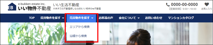 5.グローバルナビゲーションメニューから売買物件検索を行えるようにする