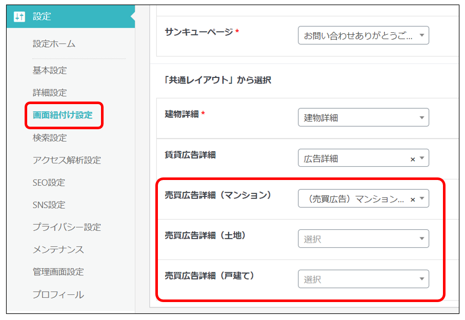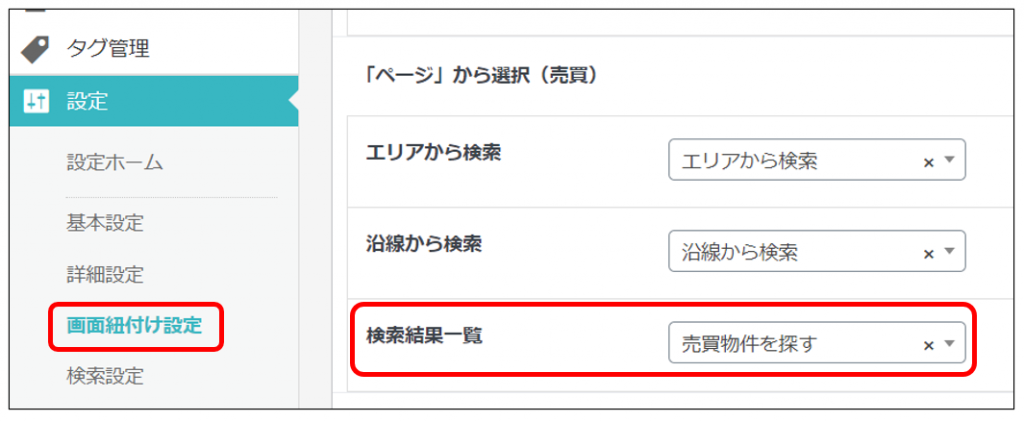 3.サイト設定で物件一覧・物件詳細の割り当てを行う