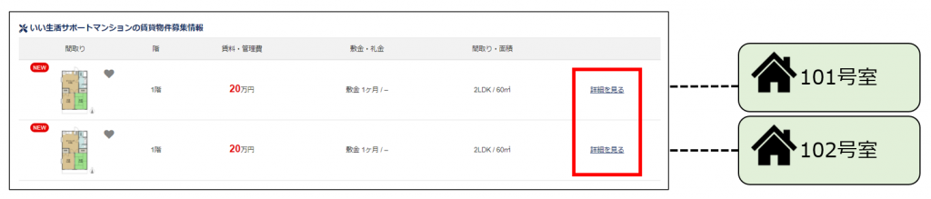 建物ページは物件一覧や各部屋の広告ページからも開くことができますが