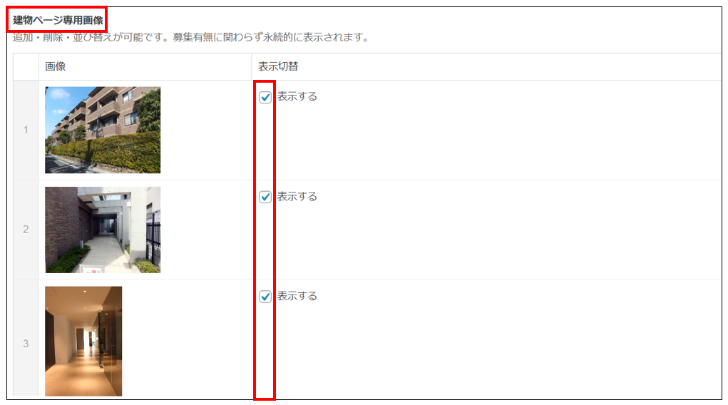 ■公開サイトの建物一覧から建物ページを非表示/再表示する、新規物件を追加する