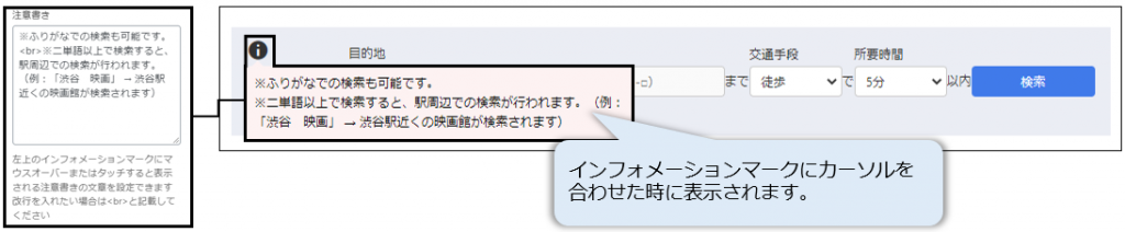 ページを公開/更新すると、公開サイトに所要時間検索ブロックが表示されます。