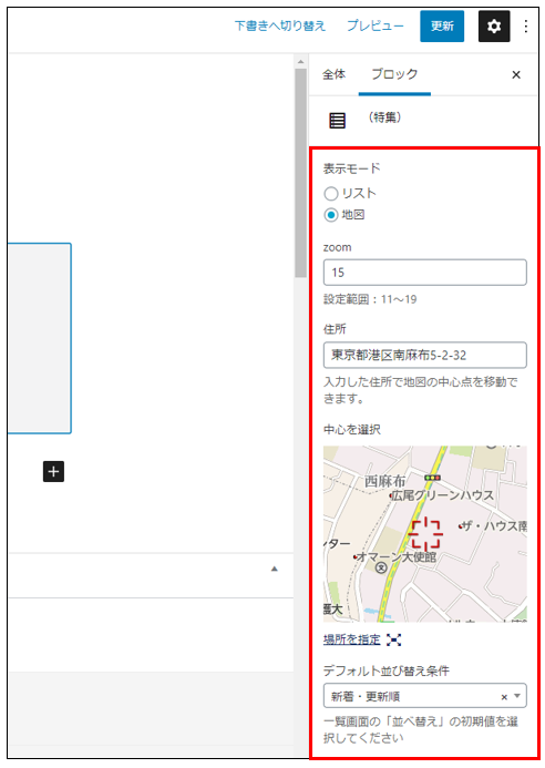 本ブロックは「対象の特集(地図)」の選択が必須です。(手順③参照)