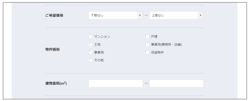(マンション等を選択した時のみ間取り項目を表示するなど)