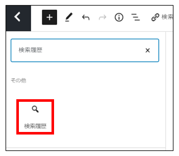 ②左上のプラスボタンから検索履歴ブロックを選択します。