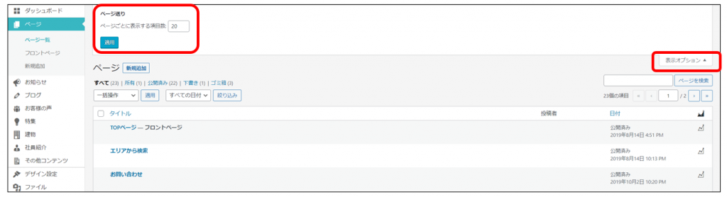 表示オプションを編集すると、管理画面に表示されている情報をカスタマイズすることができます。