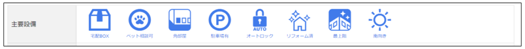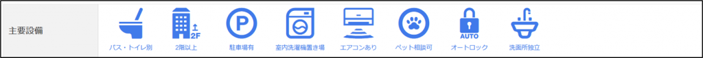 建物ページに表示される建物設備と、広告詳細ページに表示される区画設備について、