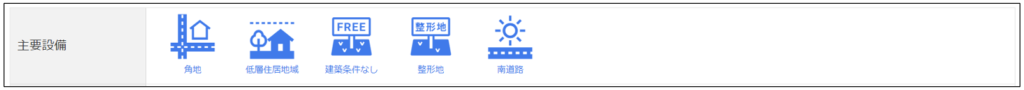 | 駅まで平坦 | 概要タブ>建物設備>立地・環境>「駅まで平坦」を選択 |