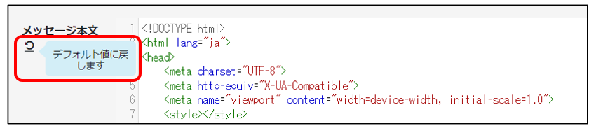 メッセージ本文項目下のマークをクリックするとデフォルトの文面に戻せます。
