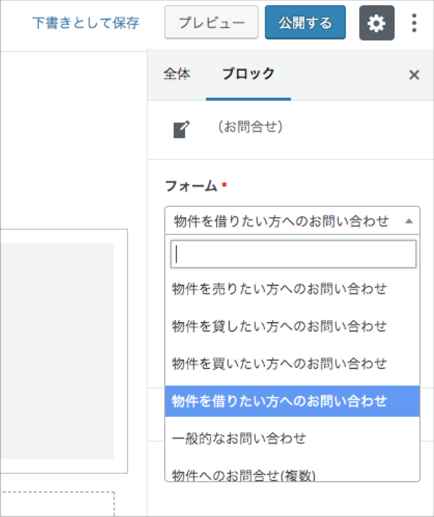 表示するお問い合わせフォームの種別を選択します。