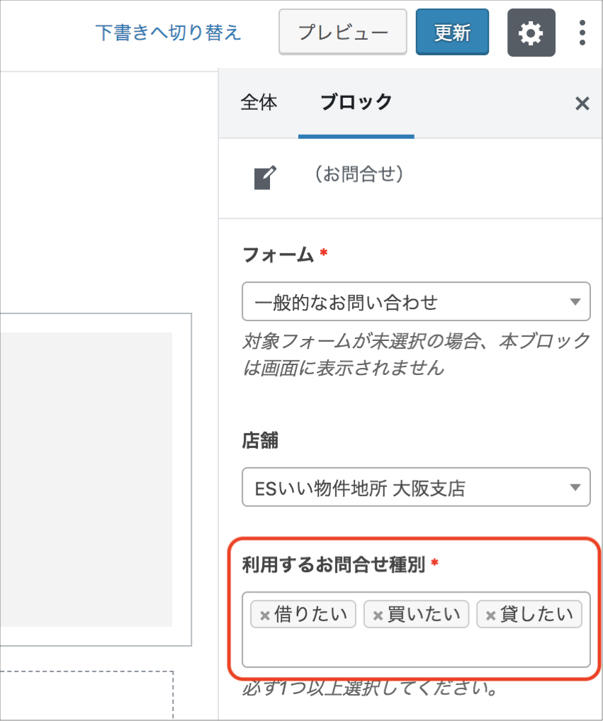 本項目は「フォーム」に「一般的なお問い合わせ」を選択した場合にのみ設定可能な項目です。
