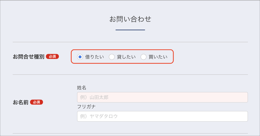 - お問い合わせ種別