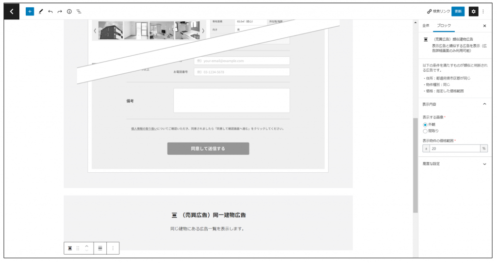 「(売買広告)詳細ブロック」が配置されている場合のみ公開サイトに表示されます。