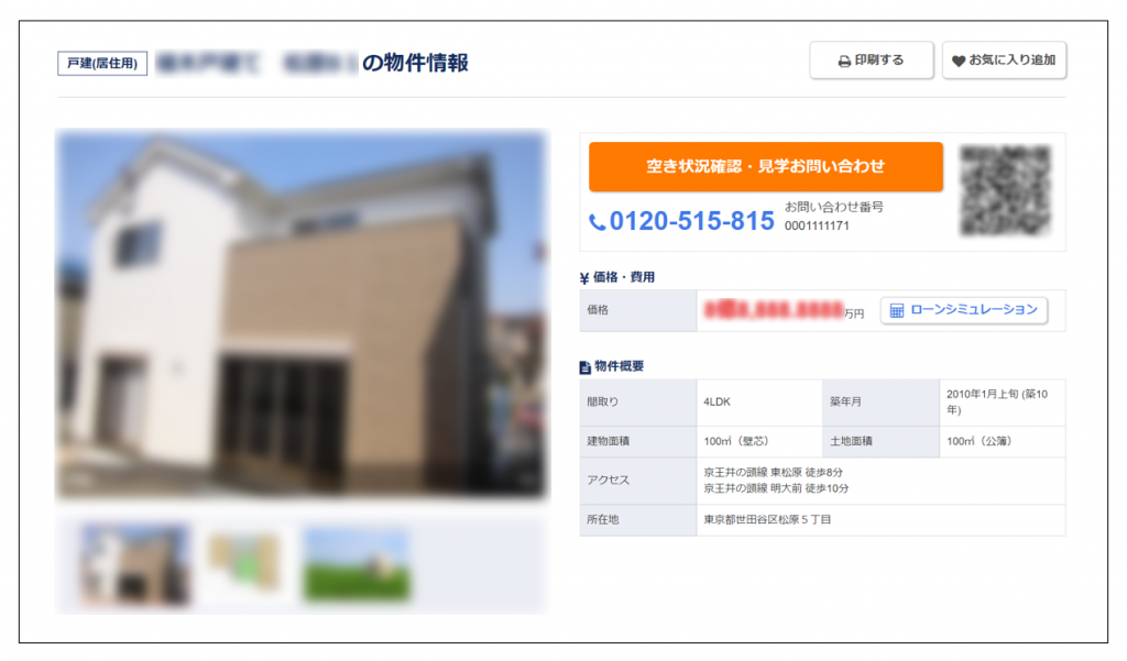 作成>サイト設定>「共通レイアウト」から選択にて設定することで、物件の詳細画面として表示されます。