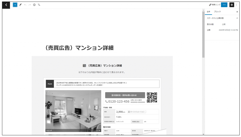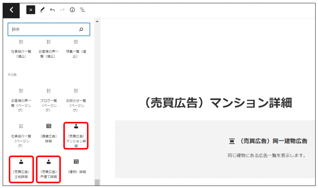 それぞれの編集ページには最初から(売買広告)詳細ブロックがセットされています。