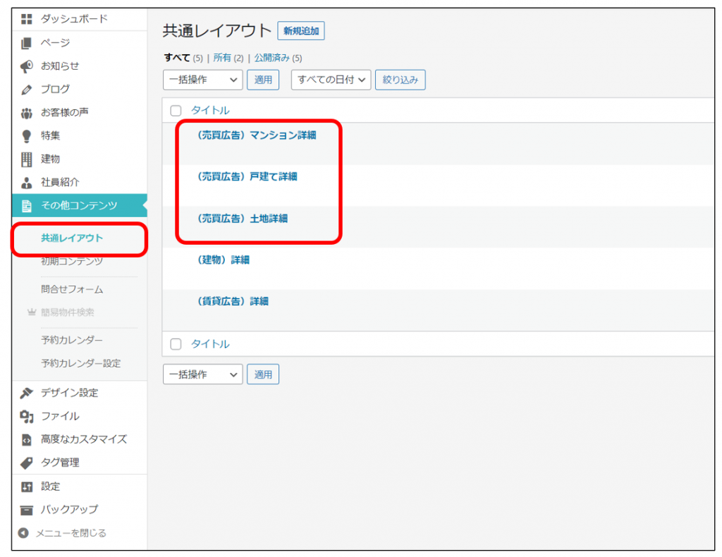 「(売買広告)詳細ブロック」が配置されている場合のみ公開サイトに表示されます。