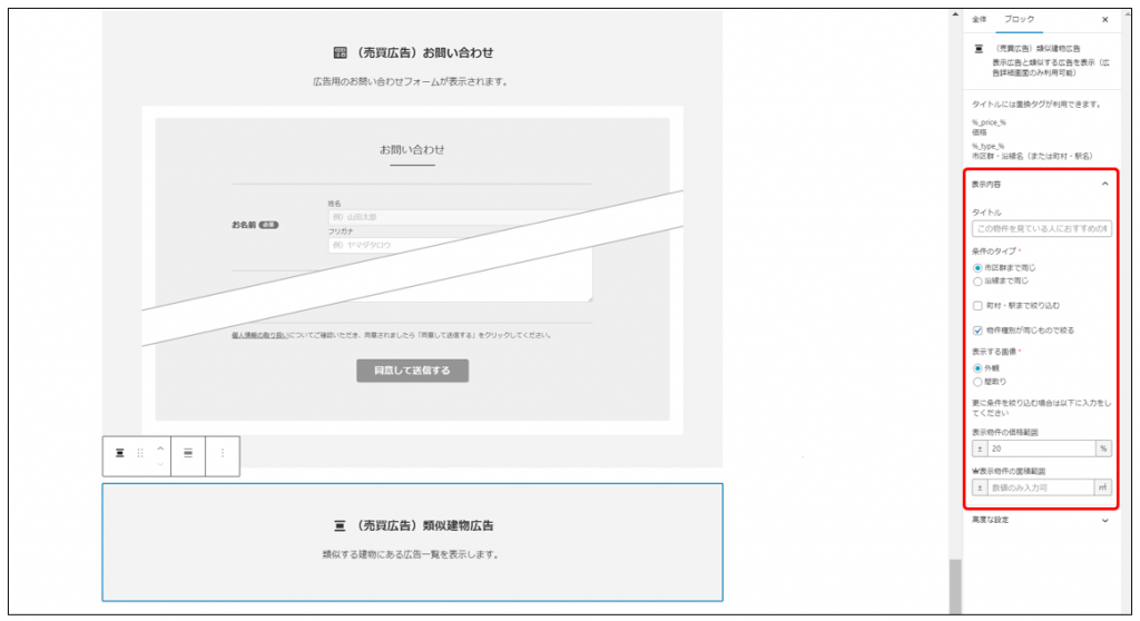 「その他」のカテゴリーから「(売買広告)類似建物広告ブロック」を選択します。