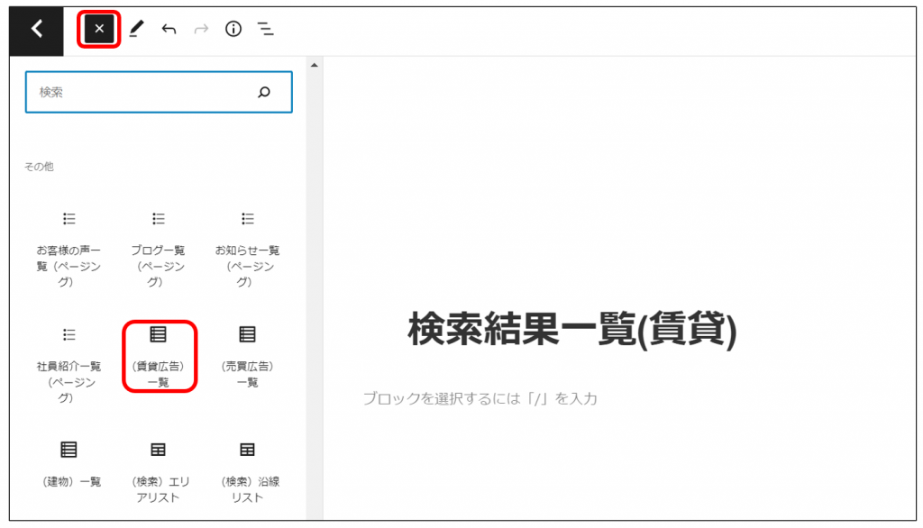 「その他」の欄から「(賃貸広告)一覧ブロック」を選択します。