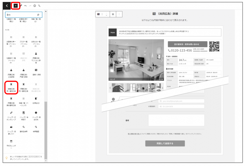 「(賃貸広告)詳細ブロック」が配置されている場合のみ公開サイトに表示されます。