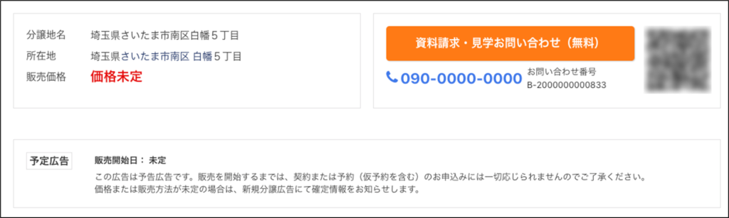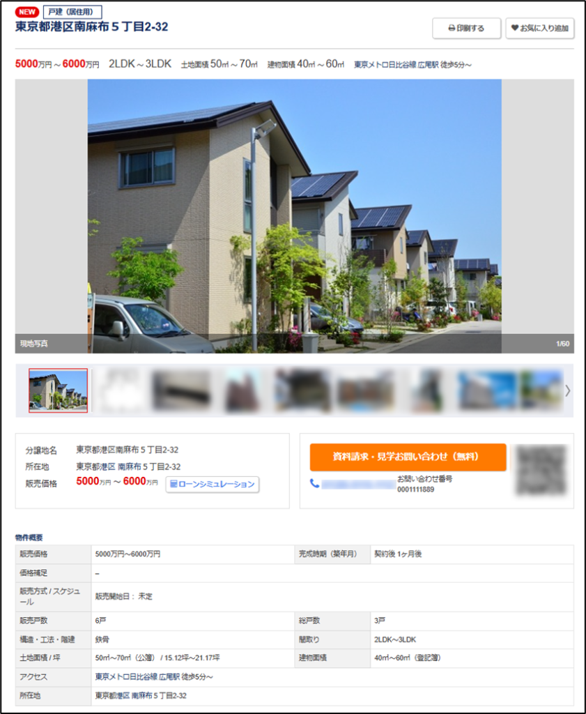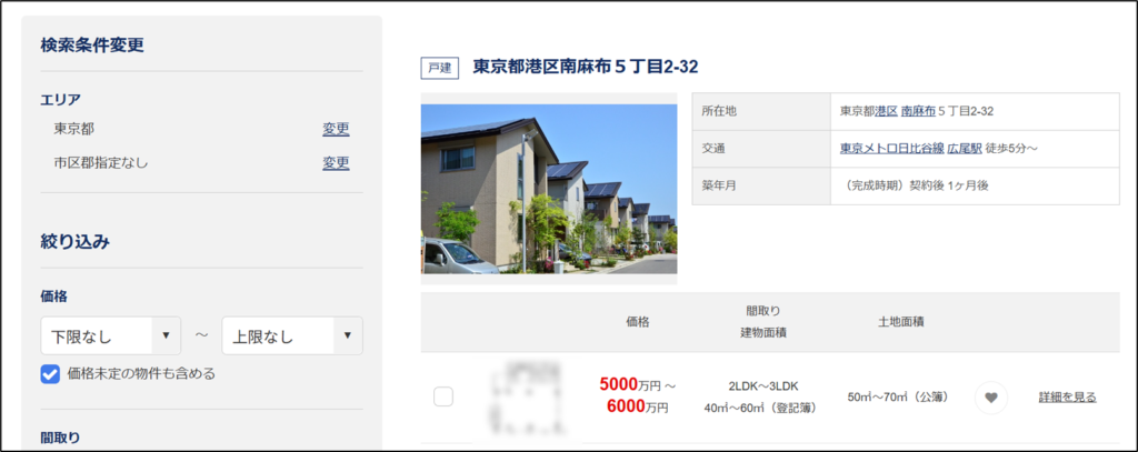 販売価格や間取り、土地面積などは最小値と最大値が表示されます。