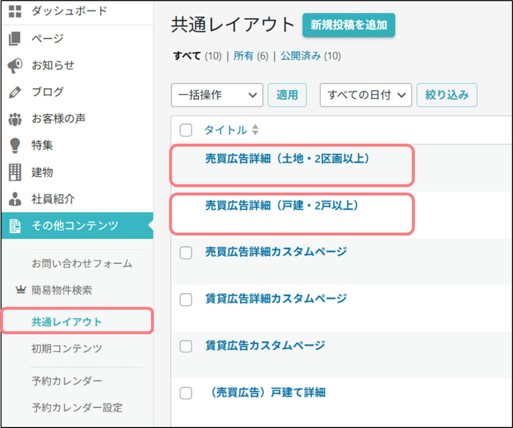 Flex多棟掲載オプションをご契約いただくと、自動で共通レイアウトと画面紐付け設定が行われます。