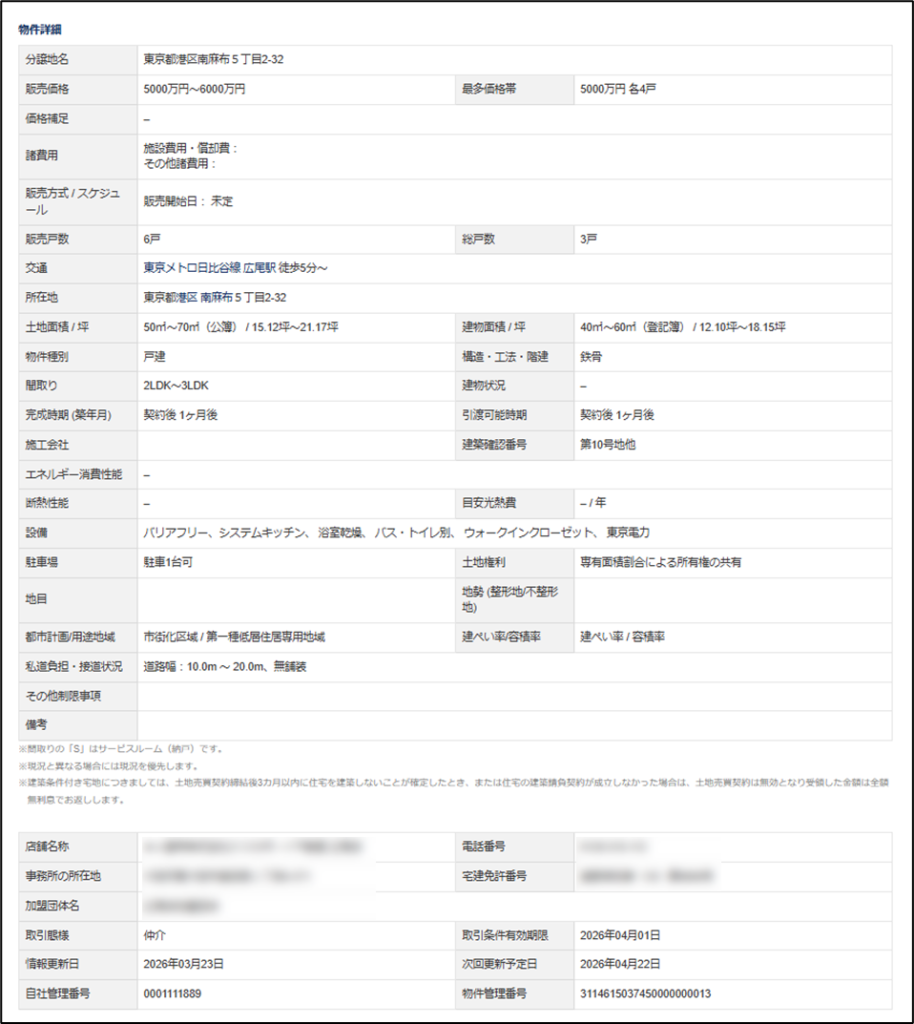 多棟分譲地の広告詳細に表示される情報について説明します。