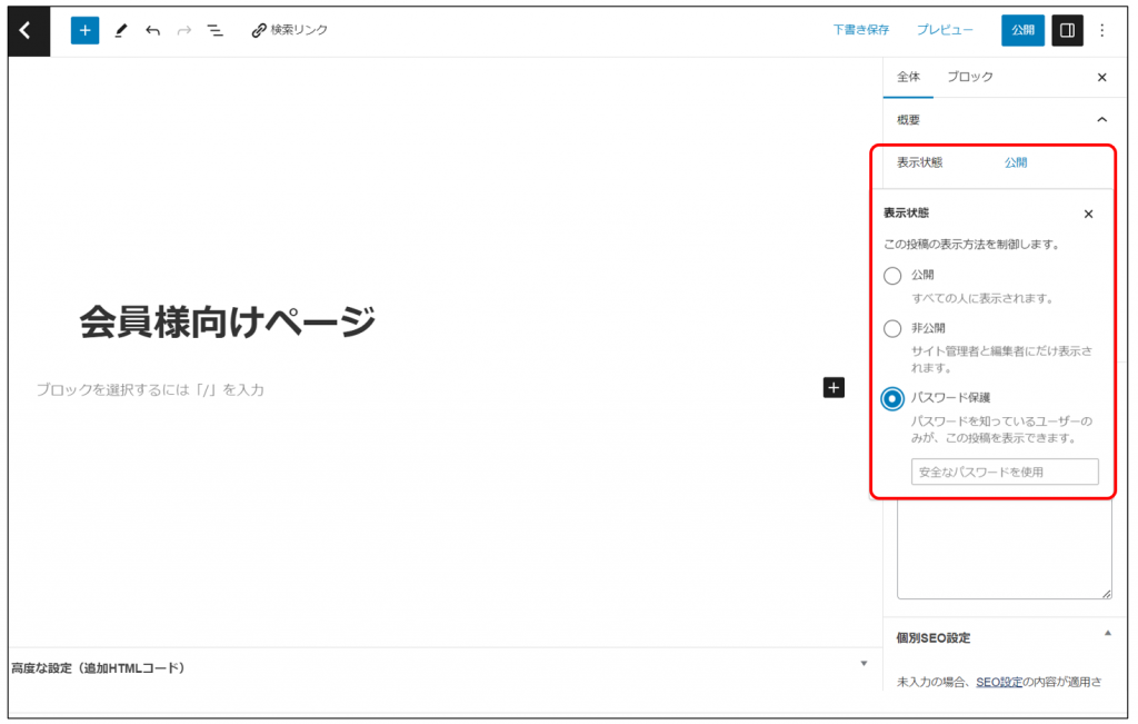 特定のユーザーにページを限定公開する(パスワード保護設定)